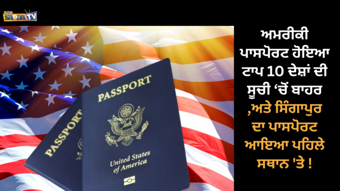 ਅਮਰੀਕੀ ਪਾਸਪੋਰਟ ਹੋਇਆ ਟਾਪ 10 ਦੇਸ਼ਾਂ ਦੀ ਸੂਚੀ ਚੋਂ ਬਾਹਰ ,ਅਤੇ ਸਿੰਗਾਪੁਰ ਦਾ ਪਾਸਪੋਰਟ ਆਇਆ ਪਹਿਲੇ ਸਥਾਨ ‘ਤੇ