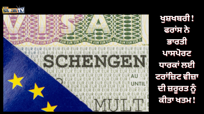 ਵਿਦੇਸ਼ ਮੰਤਰਾਲੇ ਨੇ ਵੀਰਵਾਰ, 23 ਅਪ੍ਰੈਲ ਨੂੰ ਕਿਹਾ ਕਿ ਮੁੱਖ ਭੂਮੀ ਫਰਾਂਸ ਵਿੱਚੋਂ ਲੰਘਣ ਵਾਲੇ ਭਾਰਤੀ ਨਾਗਰਿਕਾਂ ਨੂੰ ਹੁਣ 10 ਅਪ੍ਰੈਲ, 2026 ਤੋਂ ਹਵਾਈ ਅੱਡੇ ਦੇ ਟਰਾਂਜ਼ਿਟ ਵੀਜ਼ੇ ਦੀ ਲੋੜ ਨਹੀਂ ਪਵੇਗੀ।