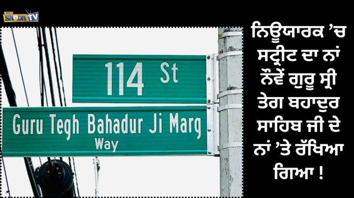 ਨਿਊਯਾਰਕ ’ਚ ਸਟ੍ਰੀਟ ਦਾ ਨਾਂ ਨੌਵੇਂ ਗੁਰੂ ਸ੍ਰੀ ਤੇਗ ਬਹਾਦੁਰ ਸਾਹਿਬ ਜੀ ਦੇ ਨਾਂ ’ਤੇ ਰੱਖਿਆ ਗਿਆ !