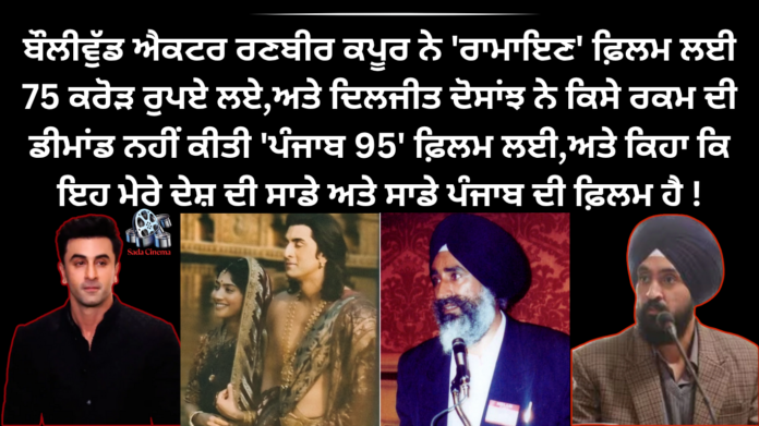 AllCelebrityHistoryWorldIndiaNationalNewsPoliticsPunjabSocial Issues ‘ਪੰਜਾਬ 95’ ਫ਼ਿਲਮ ਲਈ ਦਿਲਜੀਤ ਦੋਸਾਂਝ ਨੇ ਕਿਸੇ ਵੀ ਰਕਮ ਦੀ ਡੀਮਾਂਡ ਨਹੀਂ ਕੀਤੀ ! By saddatvusa - July 10, 2025 0 118 FacebookTwitterPinterestWhatsApp ਬੌਲੀਵੁੱਡ ਐਕਟਰ ਰਣਬੀਰ ਕਪੂਰ ਨੇ ‘ਰਾਮਾਇਣ’ ਫ਼ਿਲਮ ਲਈ 75 ਕਰੋੜ ਰੁਪਏ ਲਏ,ਅਤੇ ਦਿਲਜੀਤ ਦੋਸਾਂਝ ਨੇ ਕਿਸੇ ਰਕਮ ਦੀ ਡੀਮਾਂਡ ਨਹੀਂ ਕੀਤੀ ‘ਪੰਜਾਬ 95’ ਫ਼ਿਲਮ ਲਈ,ਅਤੇ ਕਿਹਾ ਕਿ ਇਹ ਮੇਰੇ ਦੇਸ਼ ਦੀ ਸਾਡੇ ਅਤੇ ਸਾਡੇ ਪੰਜਾਬ ਦੀ ਫ਼ਿਲਮ ਹੈ !