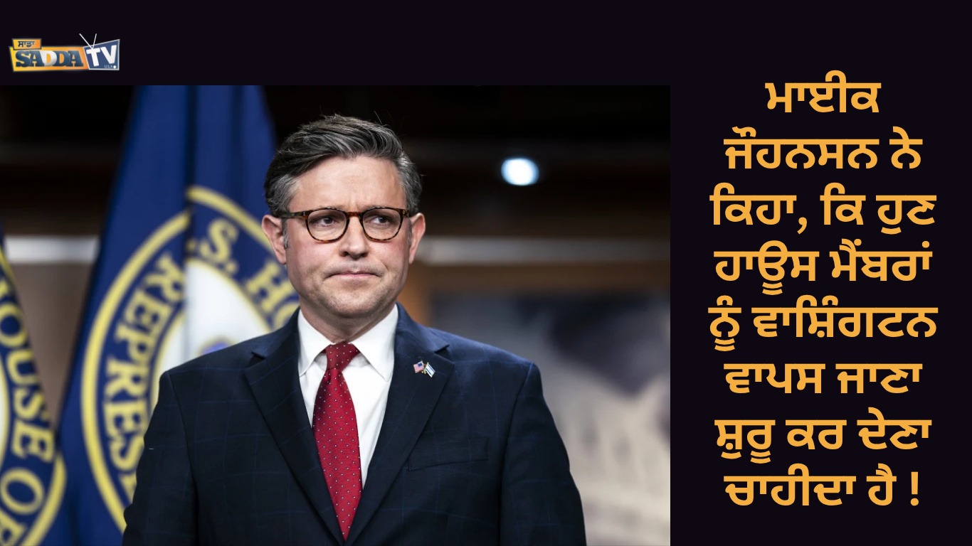 ਮਾਈਕ ਜੌਹਨਸਨ ਨੇ ਕਿਹਾ, ਕਿ ਹੁਣ ਹਾਊਸ ਮੈਂਬਰਾਂ ਨੂੰ ਵਾਸ਼ਿੰਗਟਨ ਵਾਪਸ ਜਾਣਾ ਸ਼ੁਰੂ ਕਰ ਦੇਣਾ ਚਾਹੀਦਾ ਹੈ !
