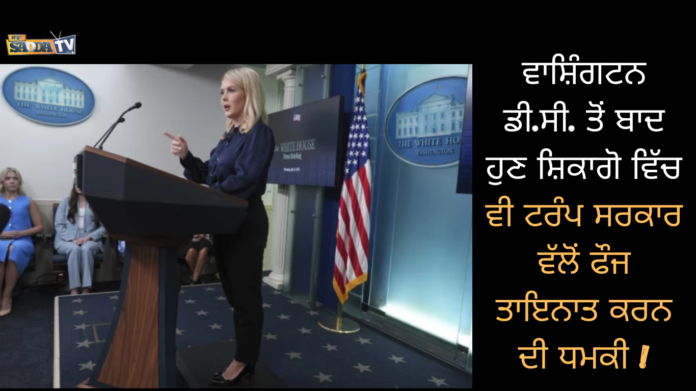 ਵਾਸ਼ਿੰਗਟਨ : ਵਾਸ਼ਿੰਗਟਨ ਡੀ.ਸੀ. ਅਤੇ ਲਾਸ ਏਂਜਲਸ ਵਿੱਚ ਨੈਸ਼ਨਲ ਗਾਰਡ ਤਾਇਨਾਤ ਕਰਨ ਤੋਂ ਬਾਅਦ ਹੁਣ ਟਰੰਪ ਪ੍ਰਸ਼ਾਸਨ ਨੇ ਸ਼ਿਕਾਗੋ ਵਿੱਚ ਵੀ ਅਜਿਹਾ ਕਰਨ ਦੀ ਧਮਕੀ ਦਿੱਤੀ ਹੈ। ਵ੍ਹਾਈਟ ਹਾਊਸ ਦੀ ਪ੍ਰੈਸ ਸਕੱਤਰ ਕੈਰੋਲੀਨ ਲੇਵਿਟ ਨੇ ਇੱਕ ਪ੍ਰੈਸ ਬ੍ਰੀਫਿੰਗ ਦੌਰਾਨ ਕਿਹਾ ਕਿ ਸ਼ਿਕਾਗੋ ਵਿੱਚ ਹਿੰਸਾ ਦੀ ਸਥਿਤੀ ਬਹੁਤ ਗੰਭੀਰ ਹੈ ! ਲੇਵਿਟ ਨੇ ਕਿਹਾ ਕਿ ਸ਼ਿਕਾਗੋ ਵਿੱਚ ਕਤਲ ਦੀ ਦਰ ਨਵੀਂ ਦਿੱਲੀ ਨਾਲੋਂ 15 ਗੁਣਾ ਵੱਧ ਹੈ ! ਸ਼ਹਿਰ ਦੀ ਬਿਹਤਰੀ ਲਈ ਸਖ਼ਤ ਕਦਮ ਚੁੱਕਣੇ ਜਰੂਰੀ ਹਨ ! ਸ਼ਿਕਾਗੋ ਦੇ ਮੇਅਰ ਬ੍ਰੈੰਡਨ ਜੋਹਨਸਨ ਨੇ ਸ਼ਹਿਰ ਵਿੱਚ ਨੈਸ਼ਨਲ ਗਾਰਡ ਤਾਇਨਾਤ ਕਰਨ ਦੀਆਂ ਖਬਰਾਂ ‘ਤੇ ਬਹੁਤ ਸਖ਼ਤ ਬਿਆਨ ਦਿੱਤਾ ਹੈ । ਬ੍ਰੈੰਡਨ ਕਿਹਾ ਕਿ ਰਾਸ਼ਟਰਪਤੀ ਆਪਣੀ ਆਪਣੇ ਰਾਜਨੀਤਿਕ ਉਦੇਸ਼ ਨੂੰ ਪੂਰਾ ਕਰਨ ਲਈ ਅਜਿਹੇ ਕਦਮ ਚੁੱਕ ਰਹੇ ਹਨ !