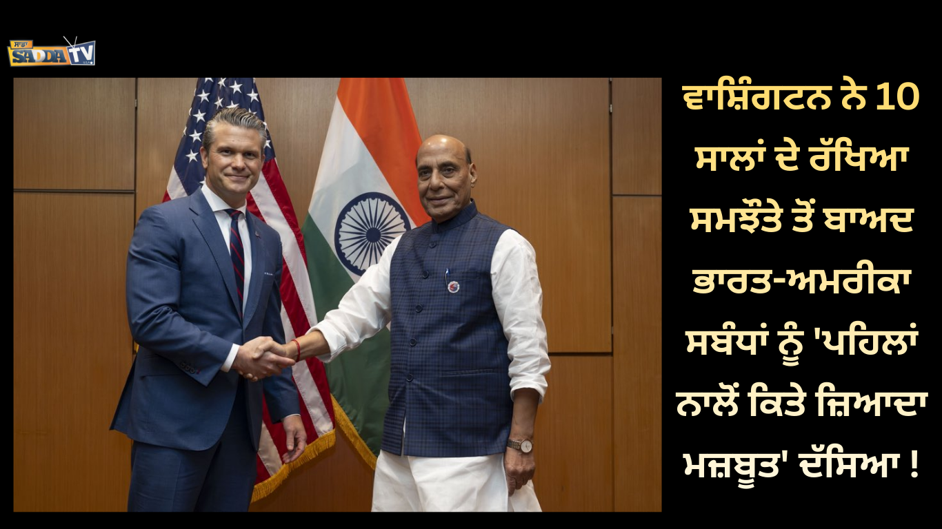 ਅਮਰੀਕੀ ਯੁੱਧ ਸਕੱਤਰ ਪੀਟ ਹੇਗਸੇਥ ਨੇ ਕਿਹਾ ਹੈ ਕਿ ਨਵੇਂ 10-ਸਾਲਾ ਅਮਰੀਕਾ-ਭਾਰਤ ਰੱਖਿਆ ਢਾਂਚੇ ‘ਤੇ ਦਸਤਖਤ ਦੁਵੱਲੇ ਸਬੰਧਾਂ ਵਿੱਚ ਇੱਕ ਵੱਡਾ ਕਦਮ ਹੈ।